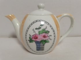 八十年代半斤花卉图侧提梁茶壶