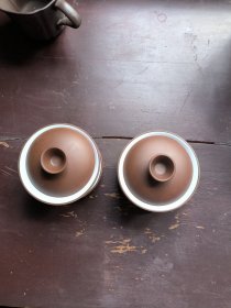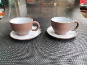 70-80年代中国宜兴紫砂挂白釉茶杯带托盘2套合售 品相尺寸如图 口宽6高度4