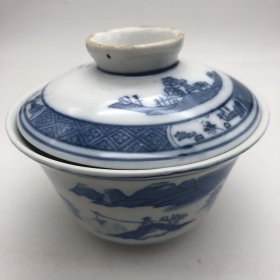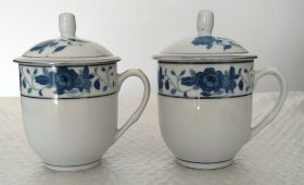 中国囯光青花茶杯 一对