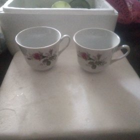 中国制造款贴花茶杯一对