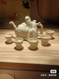 七八十年代中国定窑-老寿星倒流壶(转心壶原包装)2个壶胆老酒壶5杯一套