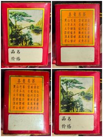 茶类老实物展示资料:60年代铁皮茶叶桶,黄山迎客松主图,含各省名茶广告,黄山毛峰,云南滇红,六安瓜片,安徽祁红,太平猴魁,福州花茶,西湖龙井,苏州花茶,洞庭碧螺,被誉为“茶中香水”的凤凰单丛,中国十大名茶之一的君山银针,武夷岩茶等,特殊年代大红袍被冠名武夷岩茶!