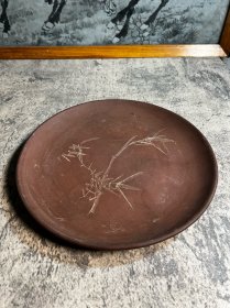 80年代,中国宜兴刻竹紫砂茶盘一只y