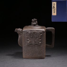 品名:四方瑞兽 底款:徐汉棠 尺寸:18/9cm 容量:500cc 紫砂分类:原矿紫泥 底款介绍:徐汉棠,1932年5月11日出生于江苏宜兴,中国工艺美术大师,荣获“中国工艺美术终身成就奖”,是中国紫砂界唯一获此殊荣者。 1948年初中毕业后即跟随父母学艺,1952年拜当代紫砂泰斗顾景舟为师,为顾景舟第一弟子。 1972年,徐汉棠与胞弟徐秀棠设计了一套“十五头嵌银丝咖啡具”,由中国故宫博物院收藏。