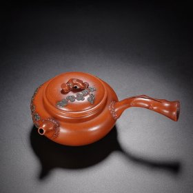 早期宜兴朱泥料:中国宜兴紫砂水平壶(盖子有磕后配)