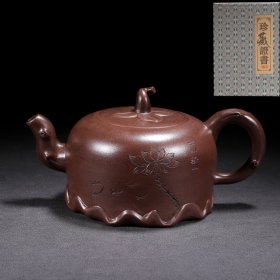 【品名】三足石瓢 紫砂壶 【底款】顾景舟,范曾(顾景舟制壶,范曾刻绘) 【尺寸】18/10cm 【容量】550cc 【紫砂分类】清水泥 【底款介绍】顾景舟(1915-1996),原名景洲。别称:曼希、瘦萍、武陵逸人、荆南山樵。自号壶叟、老萍。宜兴紫砂名艺人,中国美术家协会会员,中国工艺美术大师。18岁拜名师学艺。三十年代后期至上海制壶仿古。
