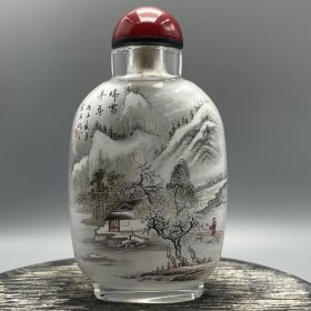 旧藏 老琉璃纯手工绘画双面内画【瑞雪丰年】山水风光鼻烟壶 【拍品介绍】本品图案清晰明了,形象生动,惟妙惟肖,本品器形完整,美观大方,古朴典雅,包浆细腻,古香古色,老气横秋,实属收藏爱好者修身养性,补充涵养的佳品!!! 鼻烟壶是地道的国粹!中国工匠的才艺便在其中发挥得淋漓尽致,现已成为艺术品收藏和投资的热门。具有较高的收藏价值和艺术欣赏价值