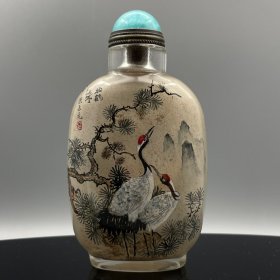 本店旧藏 老琉璃 手工绘画 【松鹤延年】内画鼻烟壶 尺寸:见图示 【拍品介绍】宝贝图案清晰明了,画面形象生动,惟妙惟肖,器形完整,美观大方,古朴典雅,包浆细腻,古香古色,老气横秋,实属收藏爱好者修身养性,补充涵养的佳品!!! 鼻烟壶是地道的国粹!中国工匠的才艺便在其中发挥得淋漓尽致,现已成为艺术品收藏和投资的热门。具有较高的收藏价值和艺术欣赏价值!喜欢的朋友来结缘! 所出拍品写真写实!