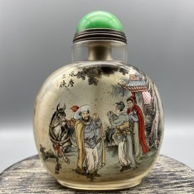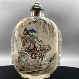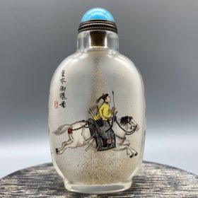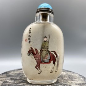本店旧藏 纯手工绘画【千里走单骑】琉璃内画鼻烟壶 【宝贝介绍】宝贝图案清晰明了,惟妙惟肖,宝贝器形完整,美观大方,古朴典雅,包浆细腻,古香古色,老气横秋,实属收藏爱好者修身养性,补充涵养的佳品!!! 鼻烟壶是地道的国粹!中国工匠的才艺便在其中发挥得淋漓尽致,现已成为艺术品收藏和投资的热门。具有较高的收藏价值和艺术欣赏价值!喜欢的朋友来结缘! 所出拍品写真写实!
