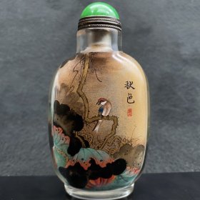 本店旧藏 纯手工绘画双面画工 【秋色】花鸟内画鼻烟壶 【拍品介绍】宝贝图案清晰明了,惟妙惟肖,宝贝器形完整,美观大方,古朴典雅,包浆细腻,古香古色,老气横秋,实属收藏爱好者修身养性,补充涵养的佳品!!! 鼻烟壶是地道的国粹!中国工匠的才艺便在其中发挥得淋漓尽致,现已成为艺术品收藏和投资的热门。具有较高的收藏价值和艺术欣赏价值!