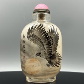本店旧藏 纯手工绘画【翱翔万里】内画鼻烟壶 【宝贝介绍】宝贝图案清晰明了,惟妙惟肖,宝贝器形完整,美观大方,古朴典雅,包浆细腻,古香古色,老气横秋,实属收藏爱好者修身养性,补充涵养的佳品!!! 鼻烟壶是地道的国粹!中国工匠的才艺便在其中发挥得淋漓尽致,现已成为艺术品收藏和投资的热门。具有较高的收藏价值和艺术欣赏价值!喜欢的朋友来结缘!