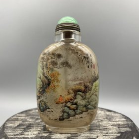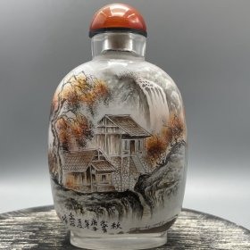 旧藏 老琉璃纯手工绘画双面内画【秋山人家】山水风光鼻烟壶 【拍品介绍】本品图案清晰明了,形象生动,惟妙惟肖,本品器形完整,美观大方,古朴典雅,包浆细腻,古香古色,老气横秋,实属收藏爱好者修身养性,补充涵养的佳品!!! 鼻烟壶是地道的国粹!中国工匠的才艺便在其中发挥得淋漓尽致,现已成为艺术品收藏和投资的热门。具有较高的收藏价值和艺术欣赏价值!