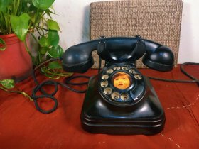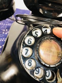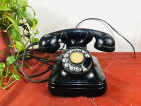建国后老上话胶木拨盘电话机!中国最早的搪瓷拨盘台式电话机!铜制底盘!三棱话柄!搪瓷拨盘!十分稀少罕见!超重机身!存世极少了!跟七八十年代拨盘电话很容易区分!机身重,话柄不一样!带有上话字样!铜制底盘也是国产唯一的!收藏价值极高!彻底打破国产拨盘电话从无到有的局面!惜拨盘可转动不回位,话筒盖缺点肉,老物件在所难免