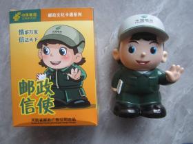 中国邮政.河南省邮政广告公司出品邮政文化卡通系列.邮政信使储蓄存钱罐PVC材质