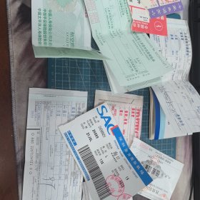 海南航空股份有限公司客票及行李票。航空旅客人身意外伤害保险单(大连市销售,海南省销售,深圳市机场销售)。IATA,中国国内客票及行李票。中国北方航空公司客票及行李票。深圳宝安国际机场登机牌。民航机场管理建设费。合售