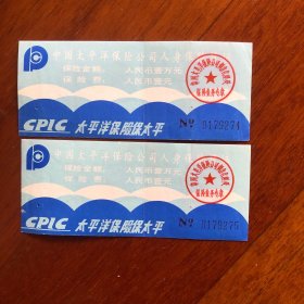 中国太平洋保险公司烟台代理处人身保险凭证连号2张(发票)