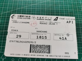 杂品甲箱6637—中国东方航空公司登机牌