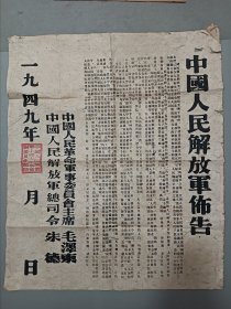 1949年,2十八,中国人民解放军,粘贴,佈告,