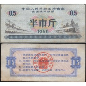 1965年全国通用粮票半市斤流通好品真品如图供应票证旧藏文玩艺术收藏,流通好品无字无裂不缺肉,尺寸长7.8cm宽3.5cm