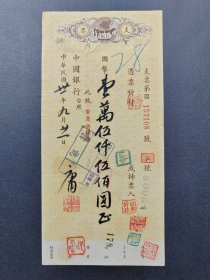 1942.9.21中国银行支票-国民党中央海外部副部长周启刚签名钤印。请见图片。