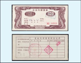 黑龙江中国人民银行哈尔滨分行1992年《企业债券--壹佰元》单枚:(27-28)