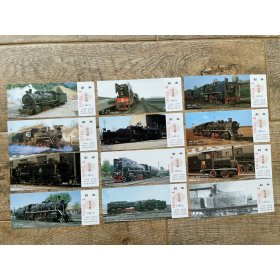 中国铁路机车站台票 蒸汽机车 12枚一套 火车图案站台票