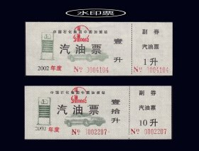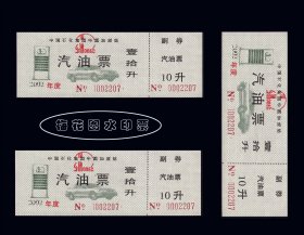 水印票:中国石化集团2002年《汽油票--壹拾升》三枚相同合计价:(23-24)
