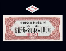 中国金属材料公司1979年《西南钢材票--100公斤》单枚:(13-14)北京。