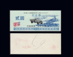 中国人民解放军七四三七工厂《内部代金券--贰元》单枚:稀缺品种(23-24)。