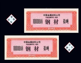 《钢材票--拾吨》中国金属公司1979年两枚相同合计价:品相漂亮(23-24)