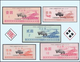 中国人民解放军七四三七工厂《内部代金券--贰元》全套五枚:稀缺品种(07-08)