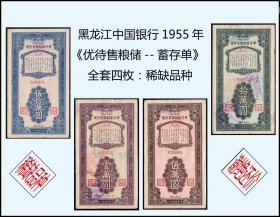 黑龙江中国银行1955年《优待售粮储--蓄存单》全套四枚:独家提供(19-20)
