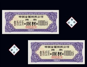北京中国金属材料公司1979年《西南钢材票--壹万公斤》共两枚价:(13-14)