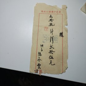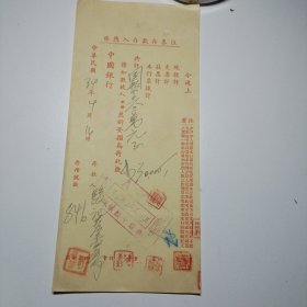 民国票据,中国银行收来往一张,川盐银行永达钱庄活期存单.一张,中央银行送金簿2张