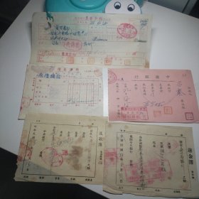 民国票据,聚兴诚送款溥1张,中国农业银行付款报单1张,收款单1张,中国银行代收款项帐单1张,共五张合售