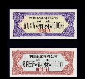 北京中国金属材料公司1979年《西南--钢材票》共两枚合计价:(13-14)。