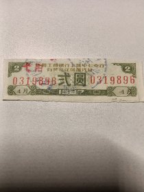 中国工商银行上饶中心支行有奖贴花储蓄凭证贰圆一枚 1987