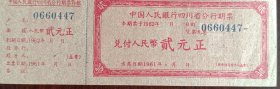 内蒙古科左后旗1952年中国银行《存单--壹万元》单枚:稀缺品种(21-22)。
