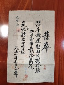 1951年 安化县一中 安化县简易师范学院 发奉单 安化细茶两斤十五两 吴泰恒商号 带新中国印花税票 安化黑茶史料 安化茶叶史料 (清明前后采摘的茶叶称为细茶)安化县立中学校校史资料
