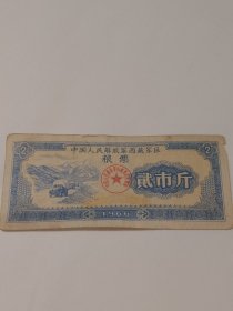 中国人民解放军西藏军区粮票 2市斤 粮票1张 粮票 老粮票 稀有粮票。