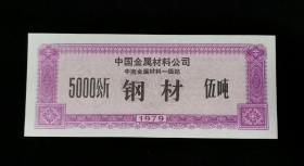 1979年中国金属材料公司:钢材票(伍吨) 1张。 (编号:34)