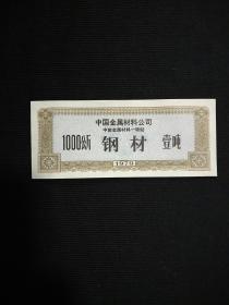 中国金属材料公司钢材票(壹吨) 1枚。 (编号09)