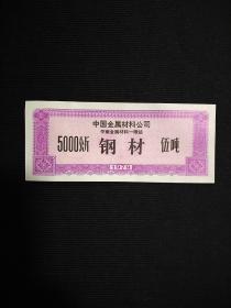 中国金属材料公司钢材票(伍吨) 1枚。 (编号10)