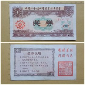 中国社会福利有奖募捐委员 1元 奖券 1987年(有黄斑见图)