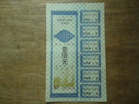 91年江门市建筑侨汇材料供应证--面值:壹佰元--盖章:中国银行开平支行