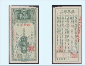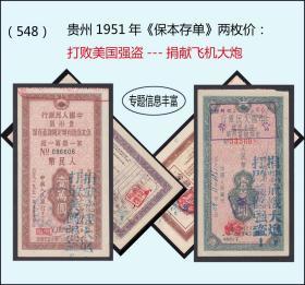 打败美国强盗:贵州1951年中国银行《保本存单》两枚价:(17-18)--548