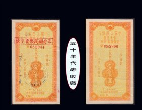 广州市安龙县1954年中国银行《保本存单--壹万元》两枚相同价:(19-20)。