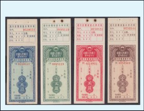 贵州省中国人民银行195X年《优惠售粮存单》四枚合计价:稀缺品种(19-20)。