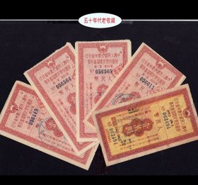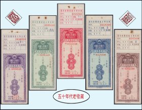 贵州省中国人民银行195X年《优惠售粮存单》全套五枚:稀缺品种(19-20)。