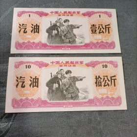 中国人民解放军油票 汽油 1公斤 10公斤各1张1971年